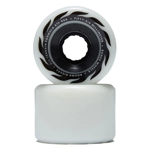 Bones ATF Rough Riders Eternal Flame 80a Skateboard Wheels – White – 56mm