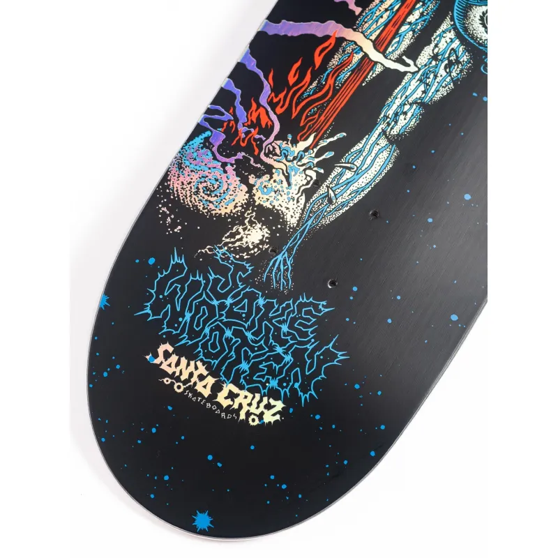 The Santa Cruz Skateboards Wooten Part Two VX Deck features VX deck construction, 14.375″ wheelbase and silver rainbow prismatic foil artwork on black matte deck bottom and all over cosmic artwork on black deck top.