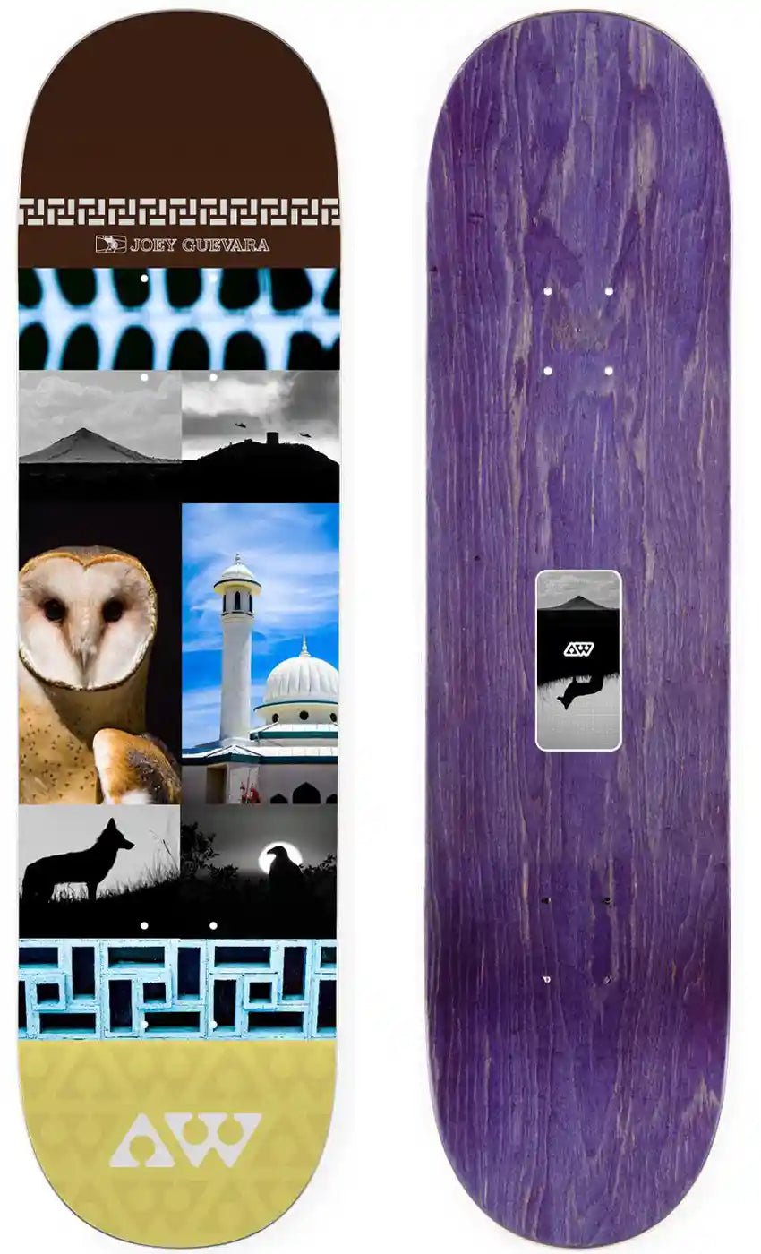 Die Holzfarben an der Oberseite, im ersten Bild rechts in Rot abgebildet, werden sortiert geliefert und können abweichen, werden aber dann ohnehin vom Griptape verdeckt.