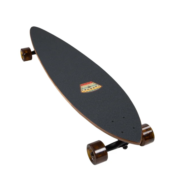 A compact pintail with an extended wheelbase and mellow flex for around town cruising and lower speed carving.