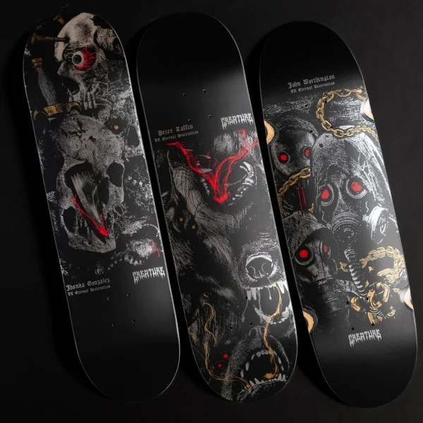 Dark Technology and Grim Art lie at the heart of the Mortem Pro series featuring the battle-proven VX Eternal Destruction construction. Three of our finest are aligned with three different dimensions. Choose from Jhankas 8.375”, Raffin’s 8.6” or Lord Worthington’s stout 9” egg shape and conquer the most unforgiving spots with confidence. Embrace the future or get left in Creature’s dust. Artwork by André Trindade.