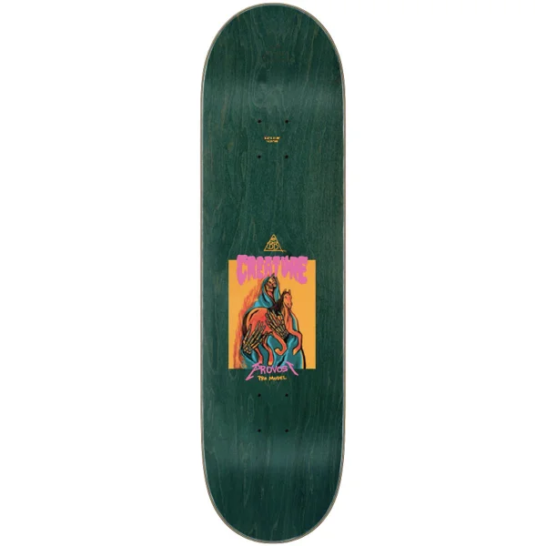 Creature Skateboards Collin Provost Traveler Pro Series deck featuring art by BB Bastidas with canvas textured graphic on 7 ply North American Maple pressed individually using epoxy making a strong, responsive deck with long lasting pop and consistent concave and kick.