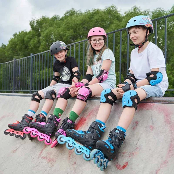 The Flying Eagle S9 DYNAMO feature a durable dual-density boot construction that offers excellent ankle support and protection while wrapping the foot with a softer and more comfortable fit. With adjustable sizing across five sizes, these skates grow with your child, providing long-term value and convenience. The neoprene liner with dual-density padding on the instep ensures a snug but cushioned fit, while the easy-to-use closure system—with a memory buckle at the top, micrometric buckle on the instep, and traditional lacing—makes these skates simple to put on and adjust. The high-quality CNC aluminum frame is adjustable side to side and supports both flat and rockering configurations by repositioning the wheels, allowing for versatile skating styles. Equipped with high-rebound 85A wheels and ABEC 7 bearings, the DYNAMO skate delivers a smooth, controlled ride, and includes our universal heel brake for additional safety.