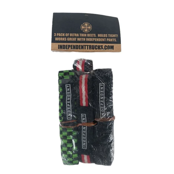 Independent Black Green Black Black Red White One Size Fits All Vintage 3 Pack Ultra Thin Belts