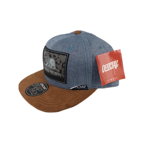 Bear Large Patch Silver Lt Blue Brown Felt Brim One Size Fits All Vintage Leather Strapback Hat