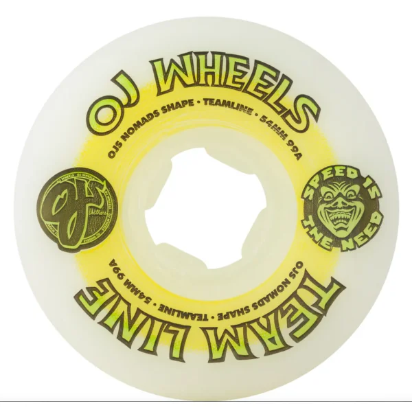 Team Line formula is custom engineered to give you the original look and feel of OJ Speed Wheels with today’s performance urethane that offers industry leading speed and reduced flat spots, with all terrain capability for any surface.