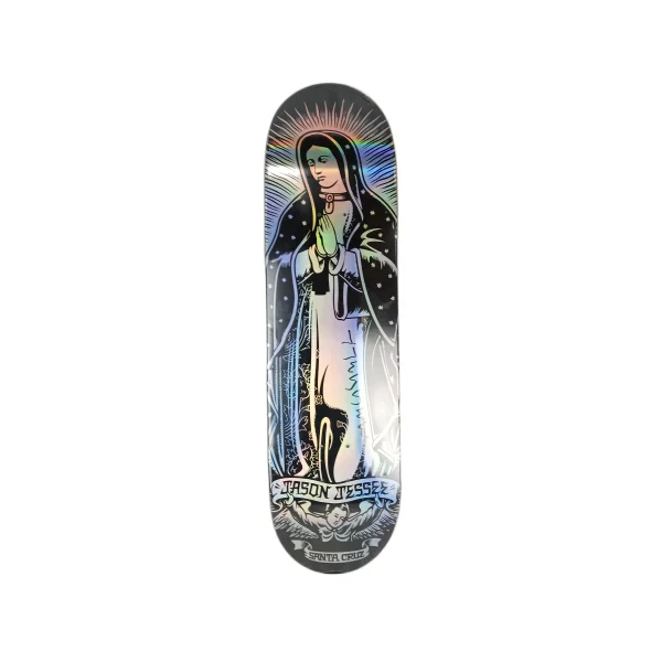 Santa Cruz Jason Jesse Lady Guadalupe Metallic Foil Silver Black Size 8.5" Vintage NOS Deck $200.00