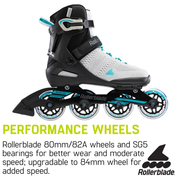 ROLLERBLADE PERFORMANCE WHEELS – 80mm/82A wheels and SG5 bearings for better wear and moderate speed; upgradable to 84mm wheel for added speed