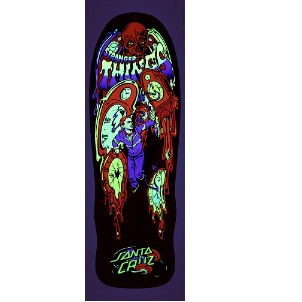 Santa Cruz skateboard deck. Stranger Things collab. Claus Grabke Max melting clock graphic. Glows in the Dark!