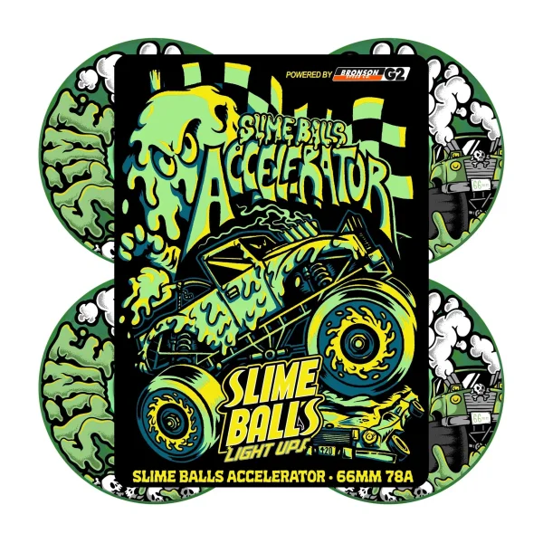 Slime Balls Accelerator Trans Green OG Slime Light Ups 66mm, 78a Wheels with glow in the dark graphics.