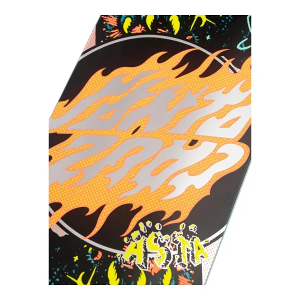 The Santa Cruz Skateboards Asta Cosmic Twin Pro 7 ply deck features Tom’s custom 8.2″ symmetrical twin shape, 14″ wheelbase, two-way black and neon Asta Cosmic Twin artwork and neon top graphic on black deck top.