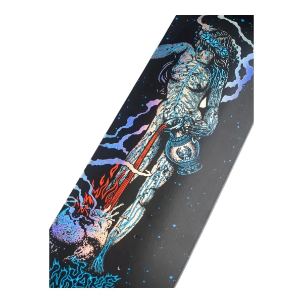 The Santa Cruz Skateboards Wooten Part Two VX Deck features VX deck construction, 14.375″ wheelbase and silver rainbow prismatic foil artwork on black matte deck bottom and all over cosmic artwork on black deck top.