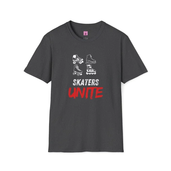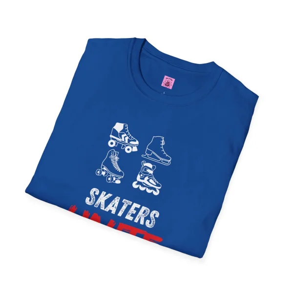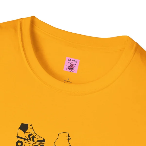 Calling all skaters! This awesome t-shirt is a celebration of everything that rolls. Whether you glide on the ice, carve up the pavement, or zip around the track, this tee reps your love for all things skate. This t-shirt features a graphic with four types of skates: roller skates, ice skates, speed skates, and roller blades. With this much skating power, you’re sure to get compliments from fellow skaters wherever you go!