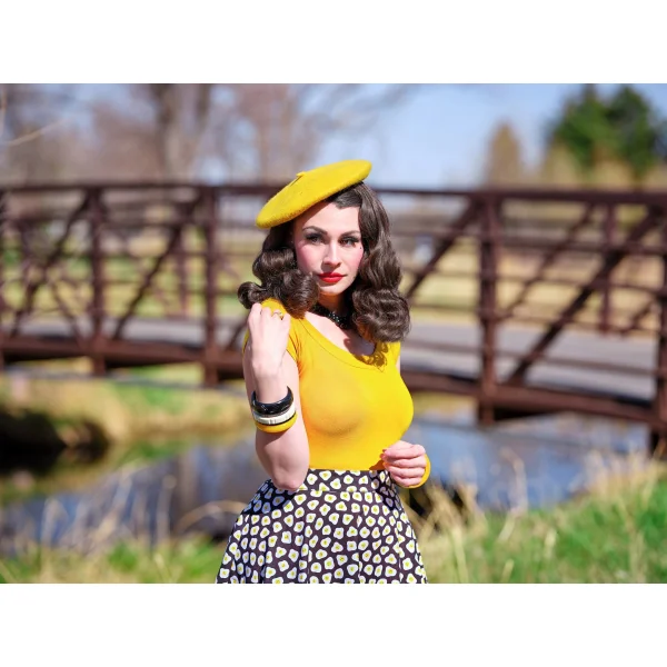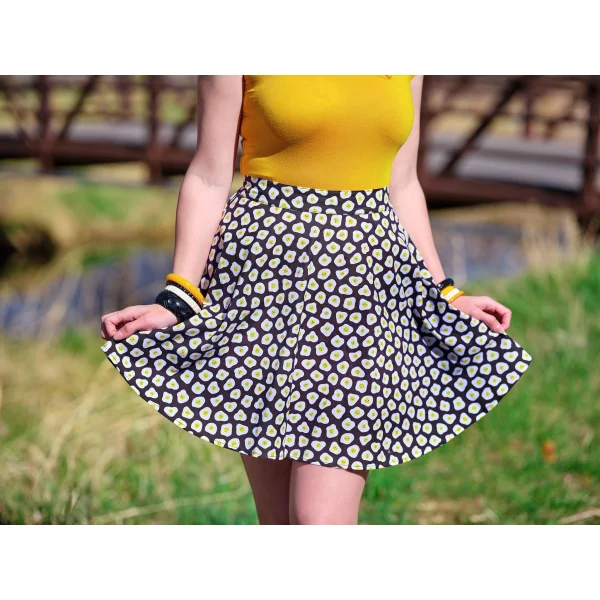 The ultimate fun and flirty skirt! Shown in our sunny side up print, this skater style skirt features an elasticized back waist for ease of wear and a back zippered closure. Pair with one of our mock neck tops for some added retro vibes!