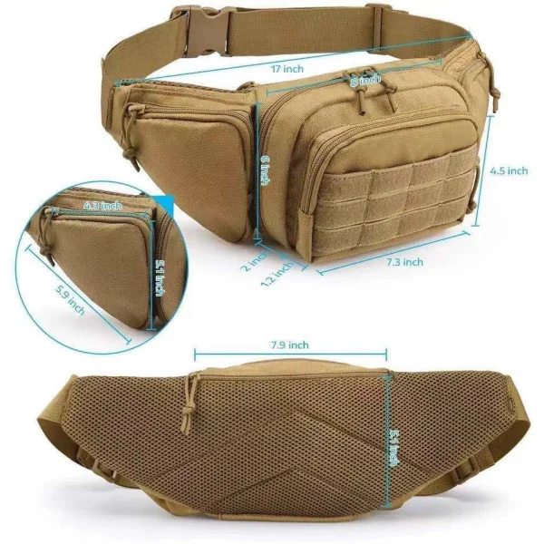 This pouch has a large compartment extra compartments at the side. It can also be used as a crossbody bag. It comes with waterproof fabric and it is made for rugged outdoor use.