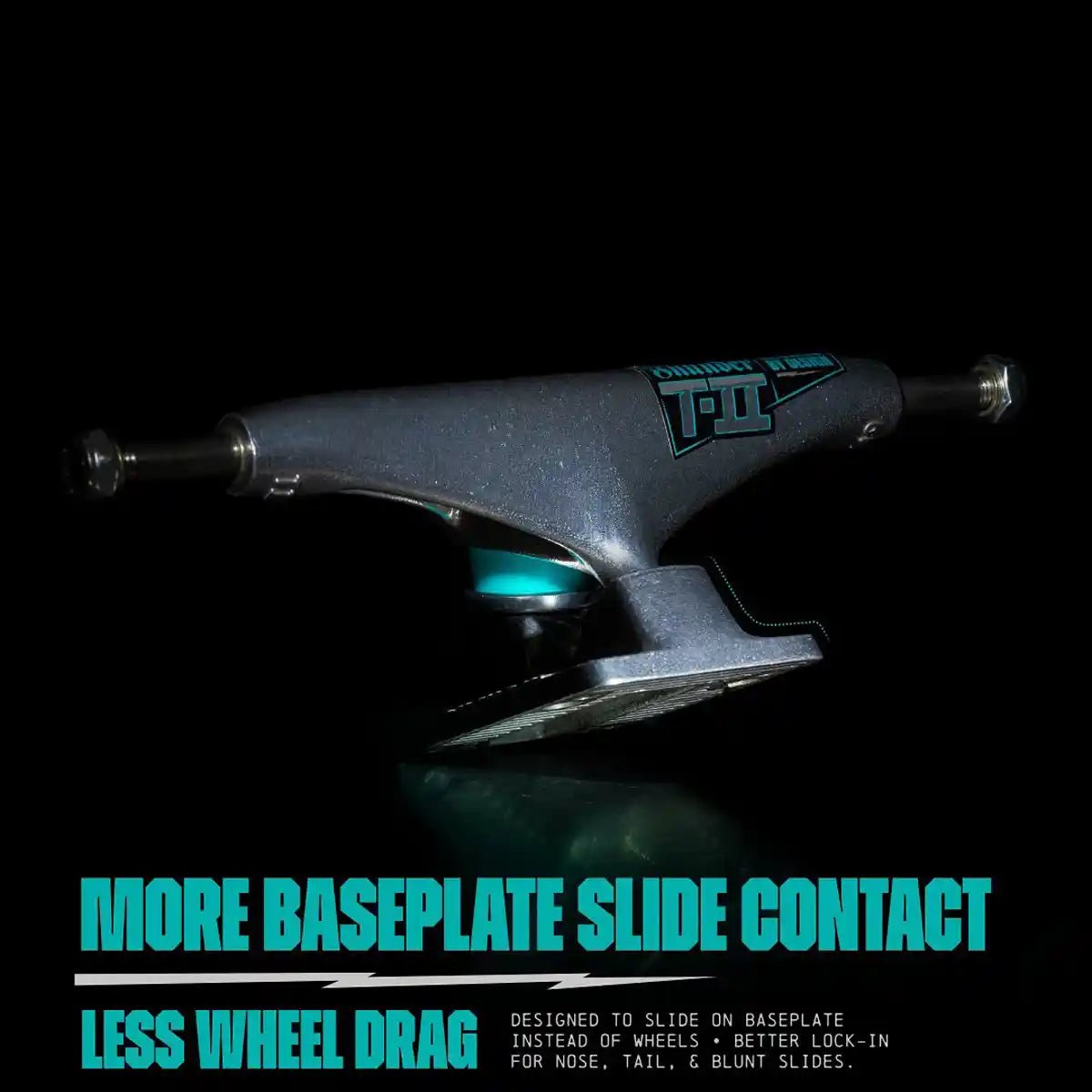 Im Vergleich zur Standard Thunder ist die TII um 3 Millimeter höher. Das hilft Wheelbite zu vermeiden, ermöglicht den Einsatz größerer Wheels ohne Riser Pads und verbessert das Lenkverhalten.