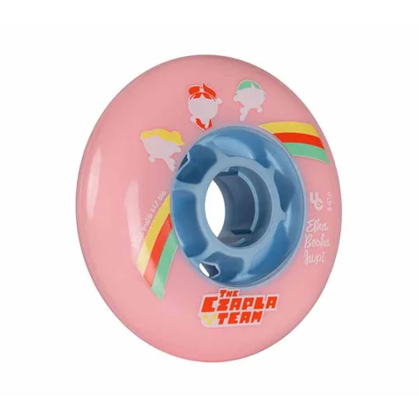 About the wheels themselves – they are made out of top-grade 86A hardness Super High Rebound (SHR) polyurethane. This hardness is a good news for people who perform a lot of demanding, wheeling tricks. The wheels roll better than softer ones when weight of whole body is put on them. The bullet profile gives them a razor-sharp precision feel, great roll and of course, speed. The size is 84 mm and not without a reason – this is the favourite diameter of majority of freestyle skaters who use tri-skating frames. Of course, these wheels, just like other models with similar specs, can be used for freeride and slides as well. Makes sense, seeing that Czapla sisters know more than a thing or two about these areas of skating, too. If you are wondering if these are worth buying, do not wonder – buy them. You’ll get yourself excellent wheels, representing not only Czapla team, but also an important chunk of European freestyle slalom scene’s history. By choosing these wheels, you support some of the most influential and talented Eastern European skaters. You may have an itch to get them and place them in display cabinet, but remember: urethane is meant to be left on concrete!